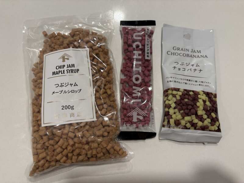 つぶジャムとはその名の通り、小さな粒状のジャムのこと。パンやお菓子に混ぜて焼くことでフレッシュな味と食感を楽しめる製菓材料です。アメリカでは見かけたことがありません。日本では、セリアや製菓材料店で手に入れることができます。貴重なので日常的に使用することはできませんが、特別な日に使っています。とってもおいしいです!