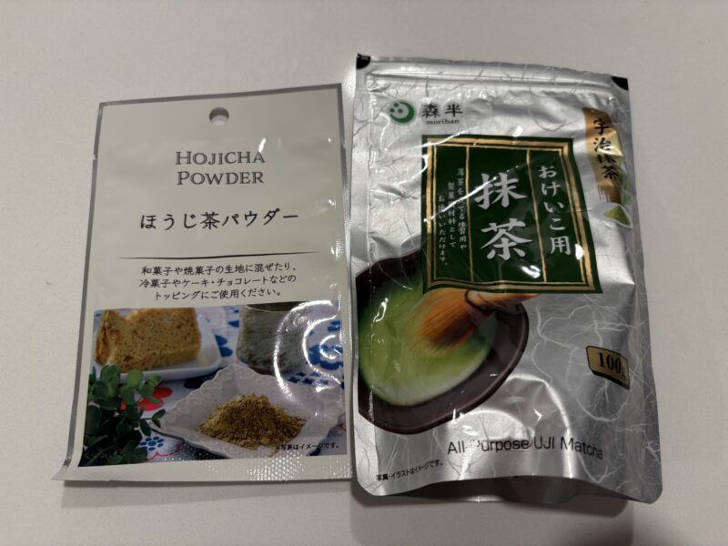 パン作りにもお菓子作りにも重宝するお茶パウダー。抹茶は日本食スーパーにも売っていますが、ほうじ茶パウダー(写真のものはセリアで購入)は全然見かけません。