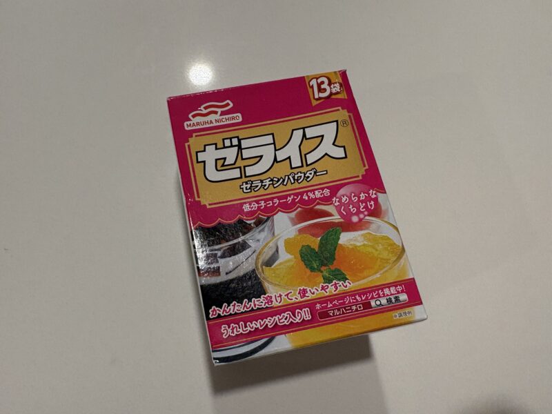 アメリカでも「KNOX Unflavored Gelatine」等が買えますが、日本のレシピで作るには調整が必要。重たいものでもないので持っておくと楽です。