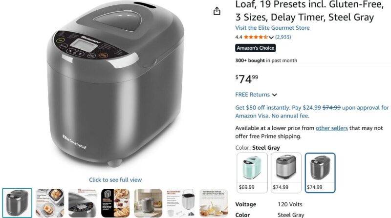 アメリカのアマゾンや現地のキッチン用品店でもホームベーカリー(Home Baker)は気軽に手に入ります。