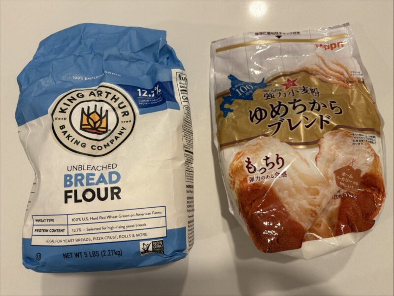 使用しているのは日本から持ってきたゆめちからブレンドと、アメリカで購入したKING ARTHURのBREAD FLOURです。どちらも安定しておいしいパンが作れるのでお気に入りです。