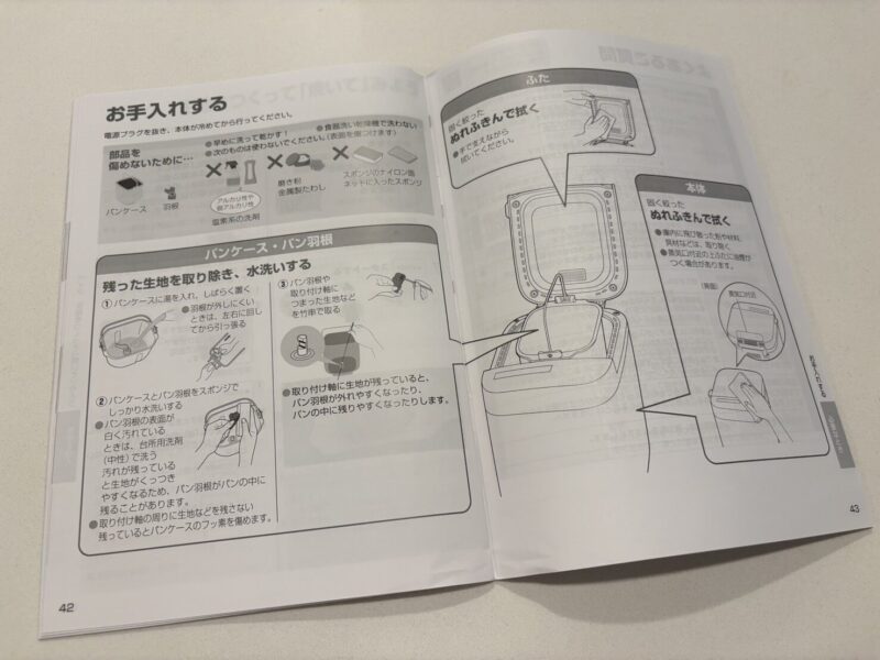 毎回のお手入れは付属の計量カップ・スプーン・型・ハネを洗う、庫内を優しく拭くだけで済む点も魅力でした。機能が増えればその分手入れの手間も上がります。しつこいようですがずぼらな私には、作るまでの心理的ハードルが低ければ低いほど活用できると思いました。