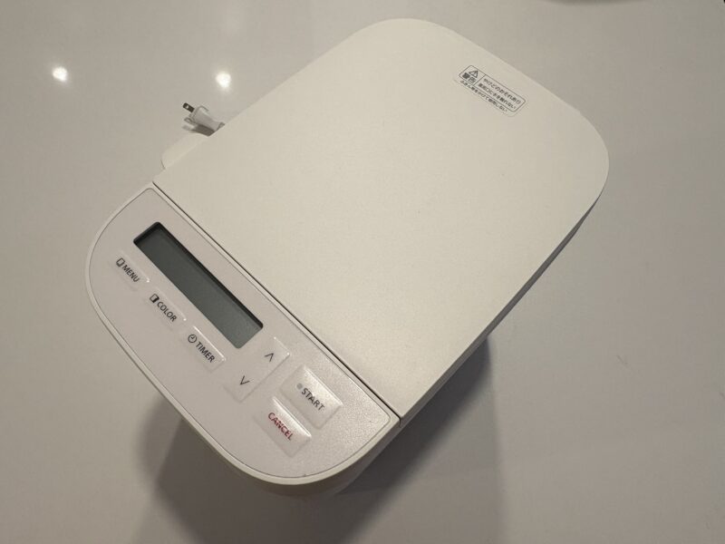 私にとっては、出しっぱなしにできるサイズであることが最大の魅力でした。ずぼらな性格上、一度片づけてしまったら滅多なことでは外に出すことはなく、タンスの肥やしになることは間違いありません。アメリカの家では多少大きなものでも問題ありませんが、日本に帰ってからも使うことを考えるとコンパクトであることは非常に重要なポイントでした。電気屋さんに行ってみて実際に見比べてみるとずば抜けて小さい点が魅力的で、他の機種はキッチンに据え置くイメージができませんでした。