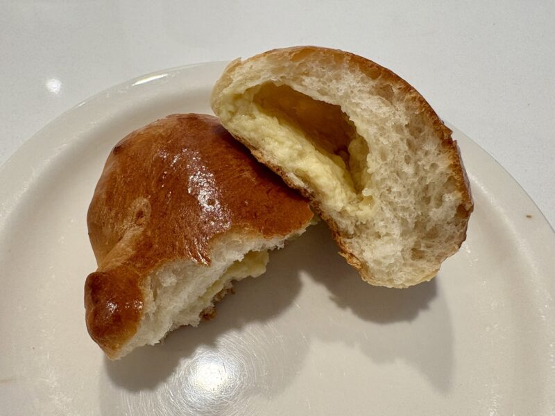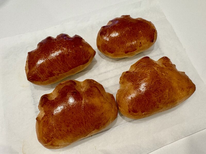パン生地機能(メニュー11番)を使用して、バターロールやクリームパン等食パン系のパン以外を作ることも可能です。以下のクリームパンは公式レシピブックには載っていませんでしたが、ネットで見つけたレシピをSD-CB1の分量に合わせる(粉が大体140gになるように計算する)ことで簡単に生地を作ることができました。