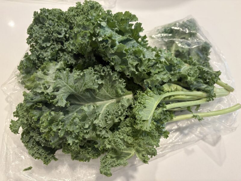 ケールは湿った環境のほうが長持ちするので、袋に入れ、隙間ができないように封をし冷蔵庫で保管します。余裕があれば湿らせたキッチンぺーパーで包むと安心です(ずぼらな私はやっていません…)。