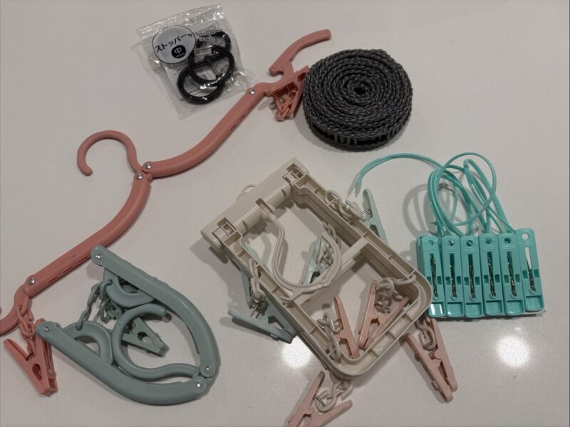 旅行が長くなる場合、旅の途中で洗濯の必要に駆られる場合があります。ランドリーマシンが利用できるホテルもあるので、ドラム式洗濯機で使用できる洗濯用洗剤があると役立ちます(縦型は泡が出るのでNG)。ランドリーマシンを使用できる場合は、乾燥機もあるはずなので不要ですが、手洗いで賄う予定の場合は、洗濯ロープや洗濯ばさみ、折り畳みのハンガーなどがあると安心です。