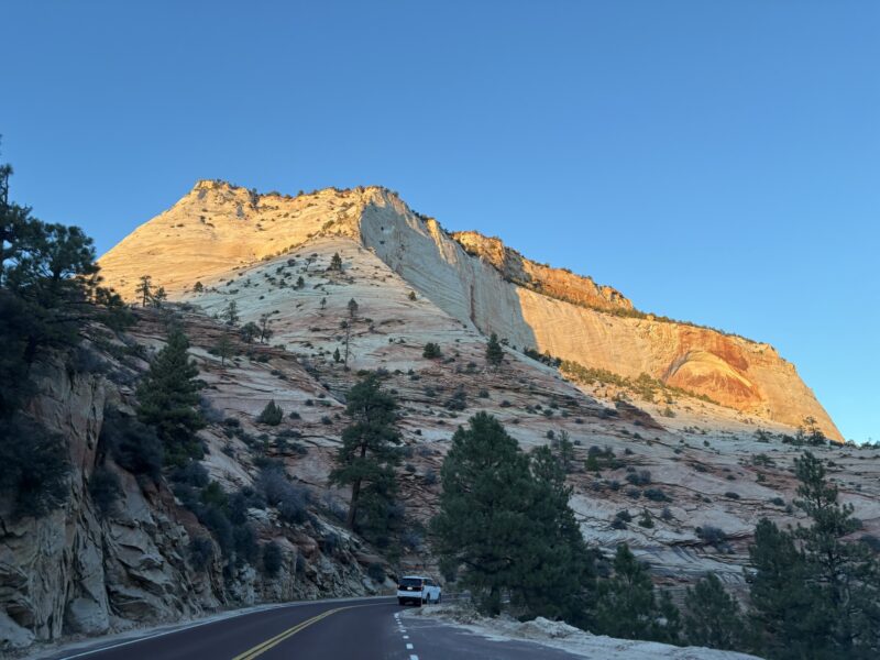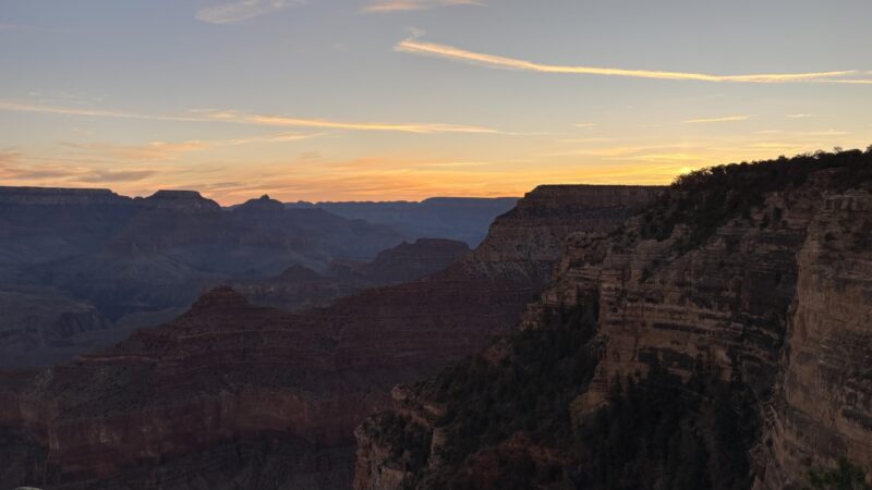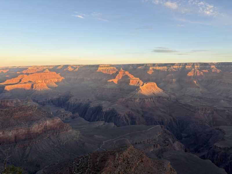 木などの障害物も多く、想像したよりは日の出向きのポイントではありませんでしたが、朝日に照らされる渓谷の、色の移ろいが美しく、素晴らしい景色を見ることができました。(朝日をしっかりと見たい場合は、Mather Pointのほうが良いかもしれません。)