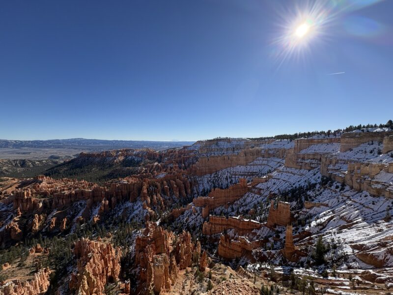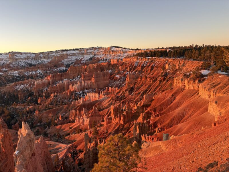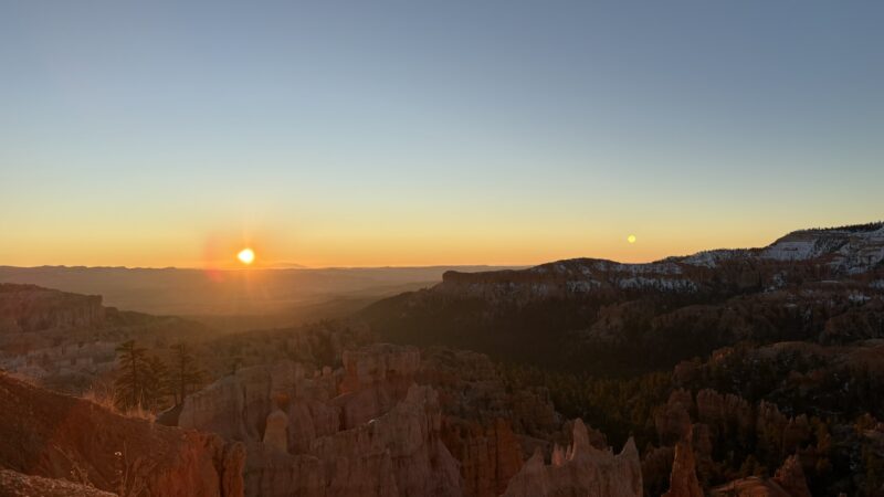 この日の日の出は7:20ごろの予定だったため、6:30ごろよりブライスキャニオン国立公園のサンライズポイントに待機し、朝日を見ました。本当に寒く待っている間は来たことを後悔するほどでしたが、本当に美しい景色を見ることができました。頑張ってよかった…。