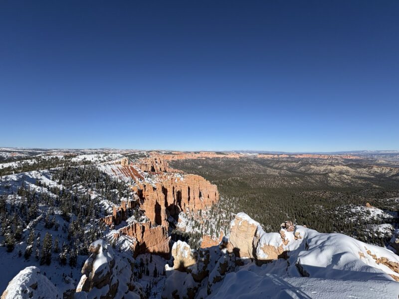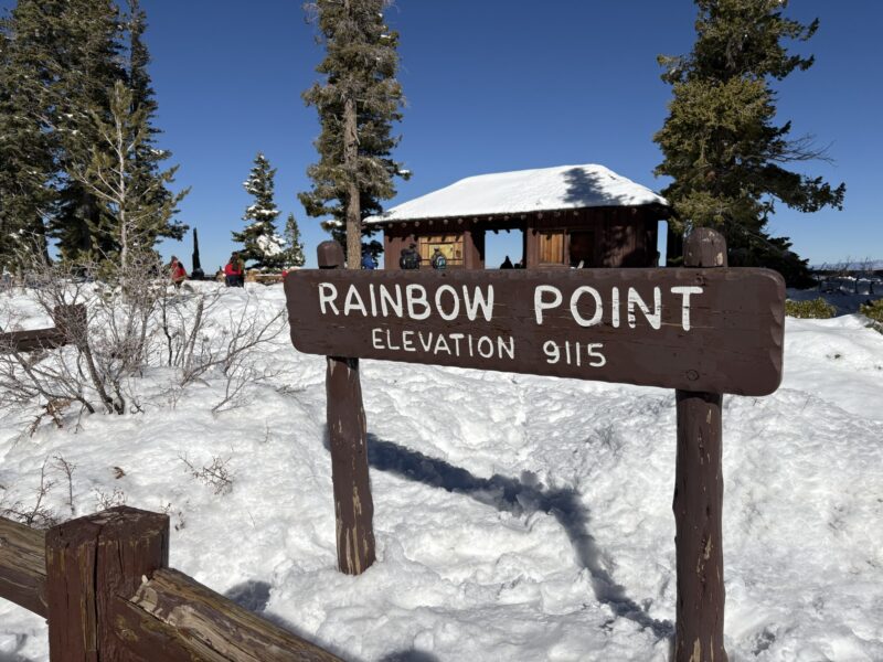 レインボーポイントは標高9,115フィート(2,778メートル)の場所にあり、ブライスキャニオン国立公園内で最も高いビューポイント。フードゥーを楽しむというよりはむしろ、高原や山脈、川の地形を楽しむことのできる場所です。