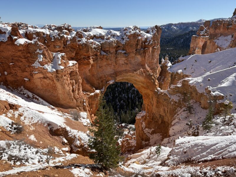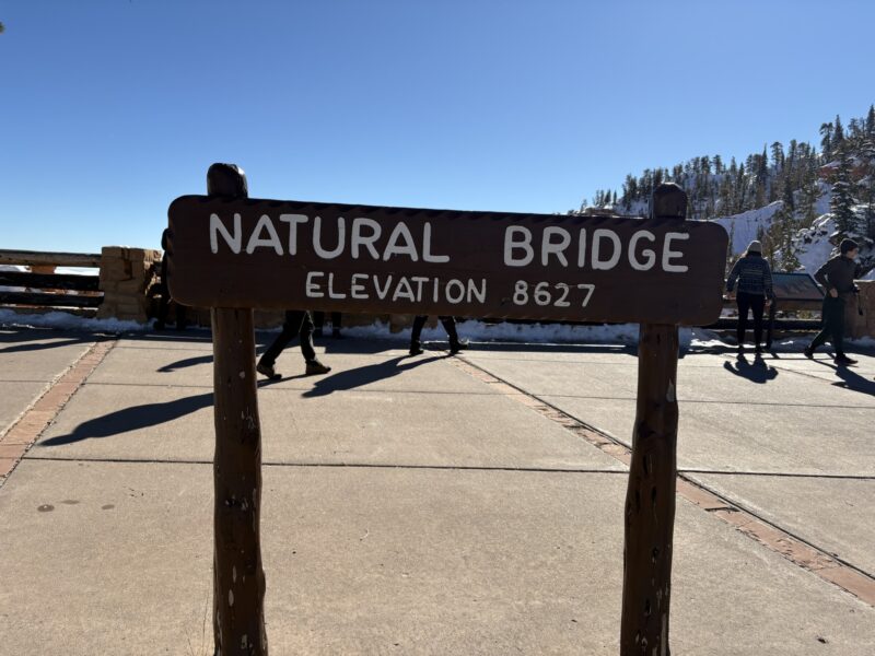 Natural Bridgeはドライブ中にサクッと立ち寄れるポイント。駐車場からアーチを見下ろすことができます。雨や雪解け、風により徐々にこの穴が大きくなっているそうで、いずれはアーチの頂上が崩れ、フードゥーとなるそうです。
