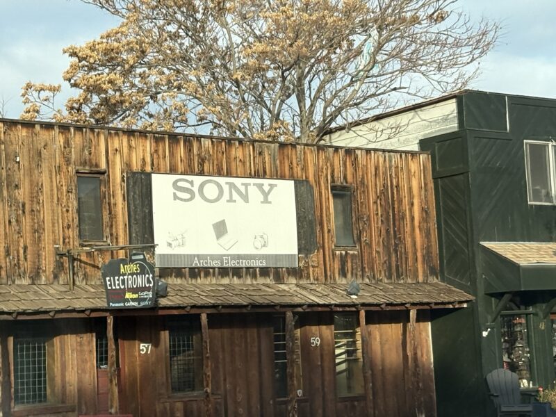 アーチーズ国立公園、キャニオンランズ国立公園の近くにある街、モアブは比較的大きな街です。マクドナルド、サブウェイ、スターバックスなどのチェーン店、いくつかのスーパーや飲食店等があり、食べ物の調達には困りません。SONYもあり親近感が湧きました。