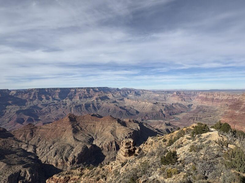 コロラド川が良く見える絶景スポットです。サウスリムの東に位置するためアクセスは微妙ですが、大変おすすめです。あまりにお気に入りだったため、私たちは5日目と6日目の2回行きました。