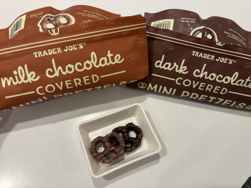 カリっとしたプレッツェルに、しっかりビターなチョコレートがたっぷりとかかっています。最初はチョコレートが多いのでは?と思いましたが、このバランスが絶妙です。カリっとした食感とビターなチョコレートの風味を楽しんでいると徐々に現れるプレッツェルの香ばしさと塩味。「甘じょっぱい」味がお好きな方は絶対に好きなはず。トレーダージョーズには様々なチョコレートがけプレッツェルがありますが、一口サイズでサクサクいける&シンプルなダークチョコレート(甘いと塩味が負けてしまう気がします)のこちらの商品が一番好きです。一つ一つがお手頃なので、ばらまきお土産にもおすすめです。