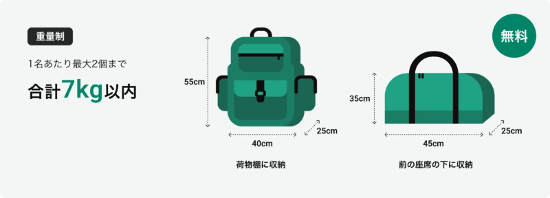 - 機内持ち込み手荷物の増量(7kg → 15kgまで)